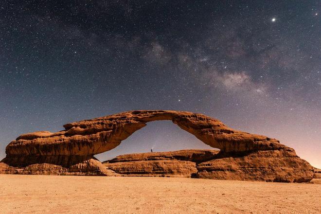 世界文化遗产之外,埃尔奥拉的现代生活正如生长于此的绿洲般充满生命力。全球最大镜面建筑构成的马拉亚音乐厅(Maraya concert hall),其建筑本身已成为沙特当代设计的巅峰体现;从2022年启动的沙特艺术双年展Desert X AlUla,则在沙漠里将公共艺术体验带向未来实验。白天,你可以搭乘热气球,或是乘越野车穿越峡谷、攀岩或徒步至隐秘观景点;夜晚,埃尔奥拉更具张力,纯净的夜空中,每一颗星星都更加耀眼。