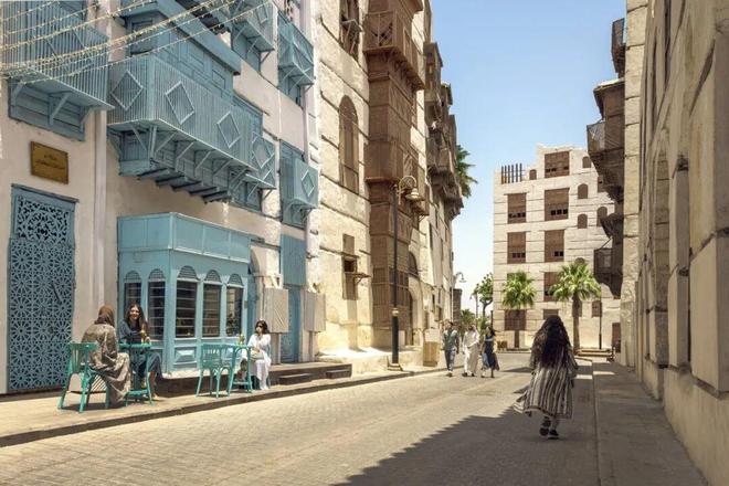 横向延展的地理空间,让旅行的开始要抉择“从哪一侧进入” 。不少人会从红海岸边的吉达开始认识沙特。被称为“红海新娘”的吉达是仅次于利雅得的沙特第二大城市,自古以来它都是半岛西海岸的主要港口和中心城市,也是麦加的重要门户。巴拉德老城 (Al Balad)的历史可以追溯到公元7世纪,它在2014年被列入世界遗产名录。如今,古城的修复和复兴项目正在进行,古老的白色珊瑚石屋、“Roshan”木格窗阳台和集市小巷之上,有更多如中东地区首个TeamLab博物馆这样的综合空间将要诞生。
