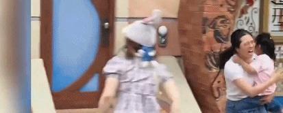 可实际情况下,任何家长的重心都会放在孩子身上,抱着孩子是在混乱场面中唯一一个比较稳妥的办法。