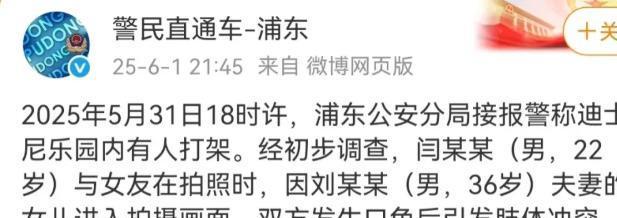 新京报:《上海警方通报“迪士尼打架事件”:双方因拍照引发冲突,正调查处理》发布时间:2025.6.1光明网:《警方通报上海迪士尼游客打架事件》发布时间:2025.6.2大河报:《“上海迪士尼游客打架”视频引关注相关部门:因拍照起冲突,孩子没受伤,正调查处理》发布时间:2025.6.1