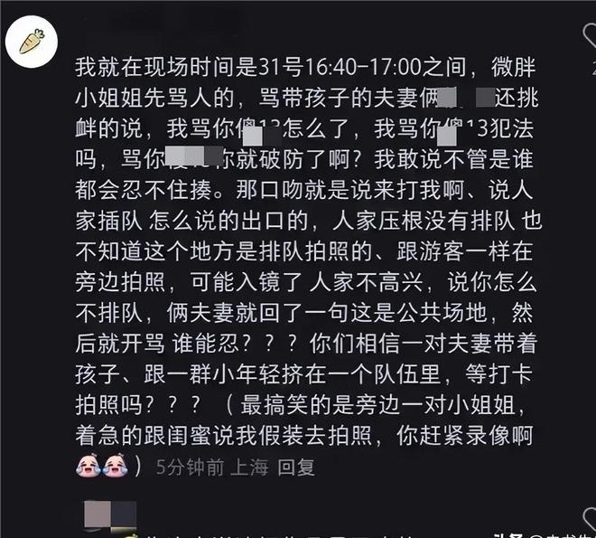 事发后,有疑似园区工作人员出来解释,称事发地并不需要排队,而是游客们自由打卡拍照的地点,如此看来,所谓“插队”的原因就不攻自破了。